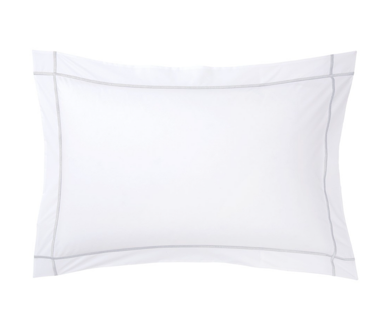 Poszewka na poduszkę firmy Yves Delorme, z kolekcji Athena została wykonana w 100% z bawełny egipskiej 500 nici/m2 oraz wykończona w białym kolorze z srebrnym ściegami. Wymiary podane w centymetrach.