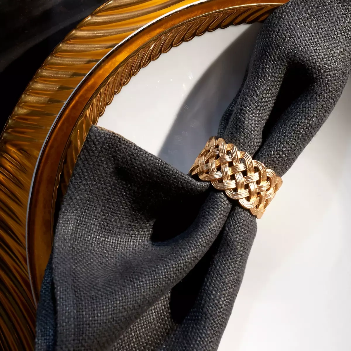 Talerz deserowy L'Objet, z kolekcji Corde (Gold)