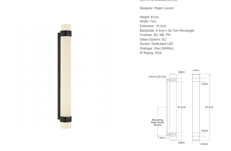 - Kinkiet Barton Large firmy Ralph Lauren Home został wykonany z brązu oraz wykończony kryształem. Lampa posiada diode led.