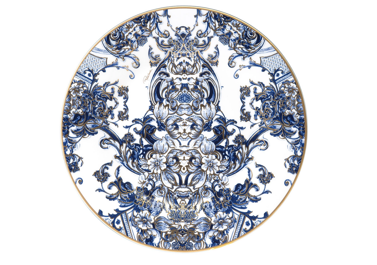 - Talerz deserowy firmy Roberto Cavalli Home, z kolekcji Azulejos został wykonany z wysokiej jakości porcelany Bone China oraz pokryty 24 karatowym złotem.