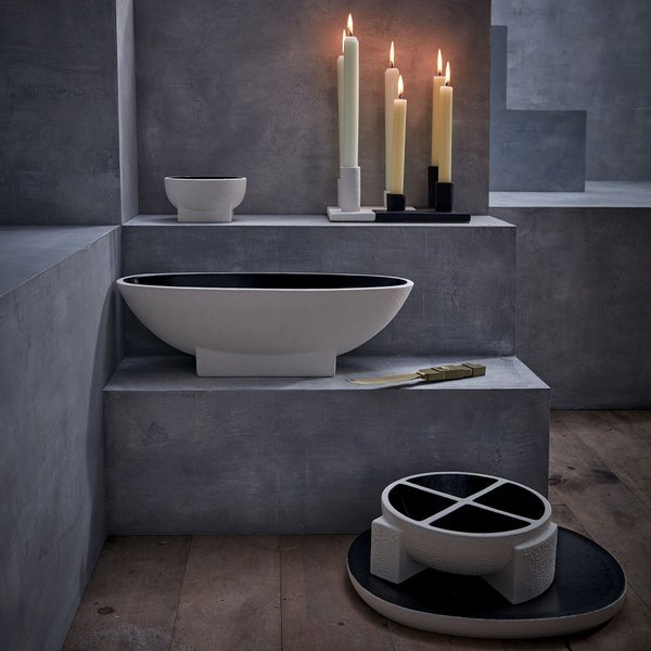 - Misa firmy L'Objet, z kolekcji Cubisme została wykonana z ceramiki oraz wykończona czarnym kolorem wewnątrz.