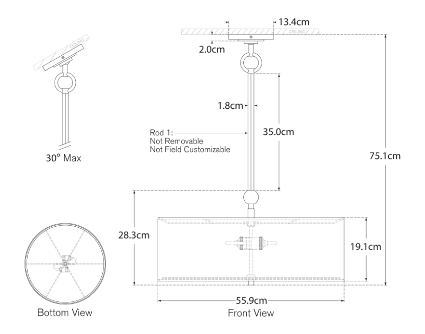 - Wymiary: wys. 74,9 x szer. 55.9 cm