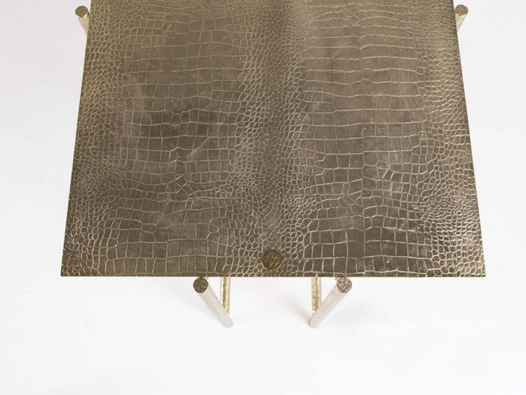 - Stolik kawowy Vanuatu firmy Roberto Cavalli Home Interiors został wykonany z metalowej podstawy w kolorze złota oraz wykończony blatem o wzorze krokodyla.
