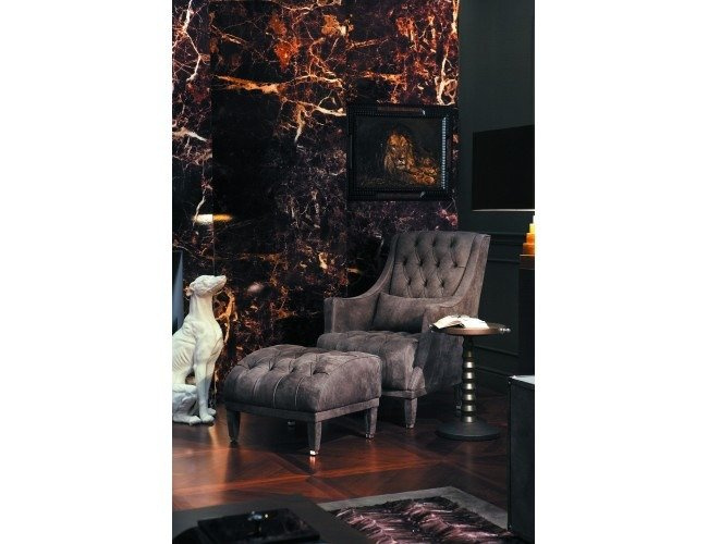 - Fotel Jana Plus Capitonnè firmy Smania posiada wypełnienie z pianki poliuretanowej o zróżnicowanej gęstości, tapicerowane nogi oraz poduszkę.