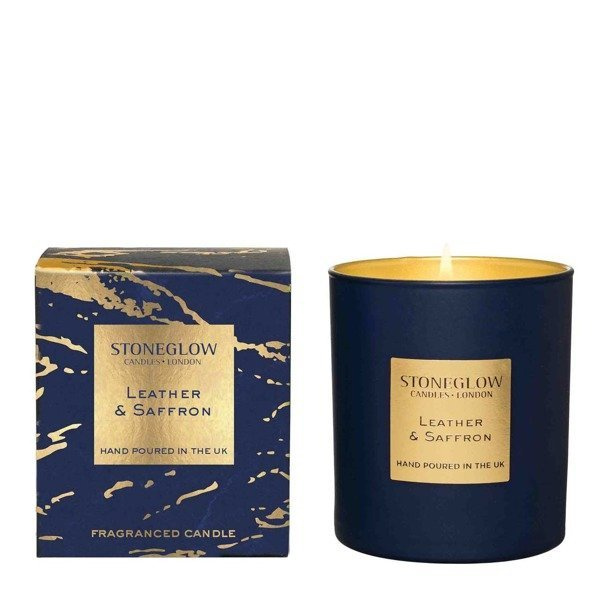 - Świeca zapachowa Luna-Leather & Saffron o zapachu drewna, skóry, zamszu, szafranu, drzewa sandałowego, jaśminu, bursztynu i piżma. Świeca została wykonana z naturalnego wosku.