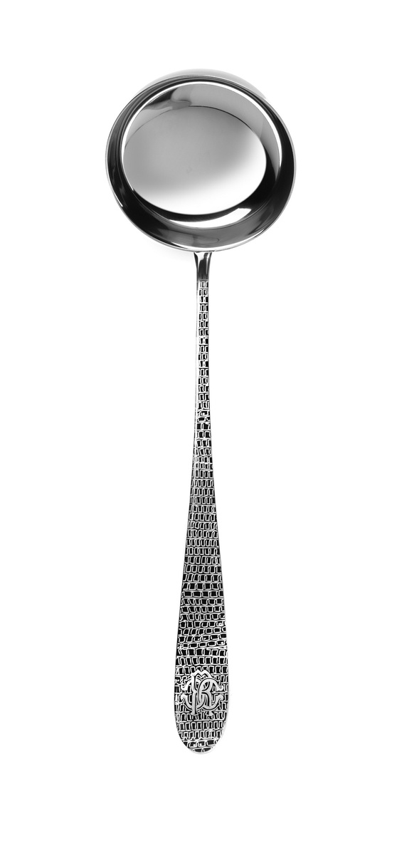 Chochla firmy Roberto Cavalli Home, z kolekcji Lizzard Platin z teksturą jaszczurki. Chochla została wykonana ze stali nierdzewnej. Wymiary: 17,8 cm.
