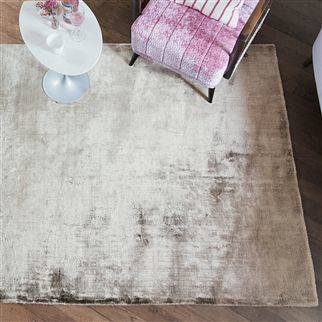 - Dywan Eberson (Slate) został wykonany w 100 % z wiskozy oraz wykończony w kolorze jasnobrązowym. Dywan posiada aksamitny połysk, który zmienia kolor pod wpływem światła.