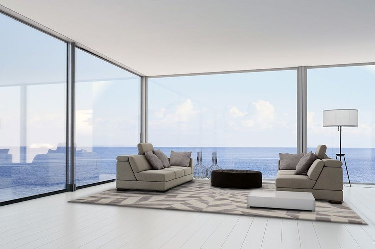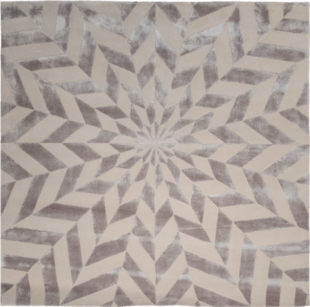 - Dywan Dynamic marki Sahrai w kształcie gwiazdy z przeplatającymi się ze sobą geometrycznymi wzorami i dryfującymi w kierunku centralnego punktu.