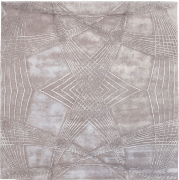 - Dywan Reflection marki Sahrai został wykonany z jedwabiu oraz wykończony liniami łączącymi się ze wszystkich stron w beżowym kolorze.