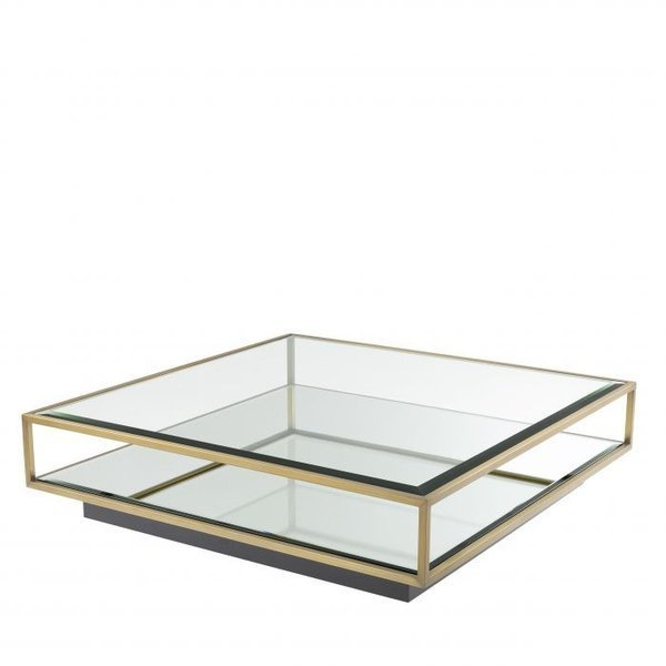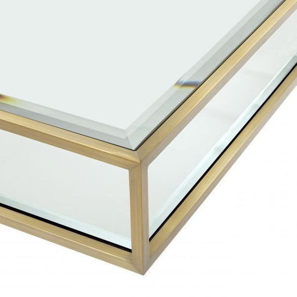- Stolik Tortona L firmy Eichholtz został wykonany ze szczotkowanego mosiądzu oraz wykończony szkłem lustrzanym.