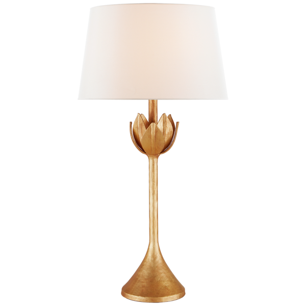 Lampa stołowa Alberto projektu Julie Neill została wykonana w złotym kolorze oraz wykończona jasnym, lnianym abażurem. Lampa posiada gniazdo na żarówkę E 27. Wymiary: 81,9 x 43,2 x 19 cm.
