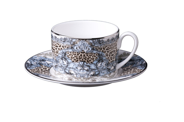 - Zestaw sześciu filiżanek do herbaty Roberto Cavalli Home, z kolekcji Palazzo Pitti wykonany, z białej, wysokiej jakości porcelany Bone China. Filiżanka posiada wzór z motywem pantery, pokryta 24 karatowym złotem.