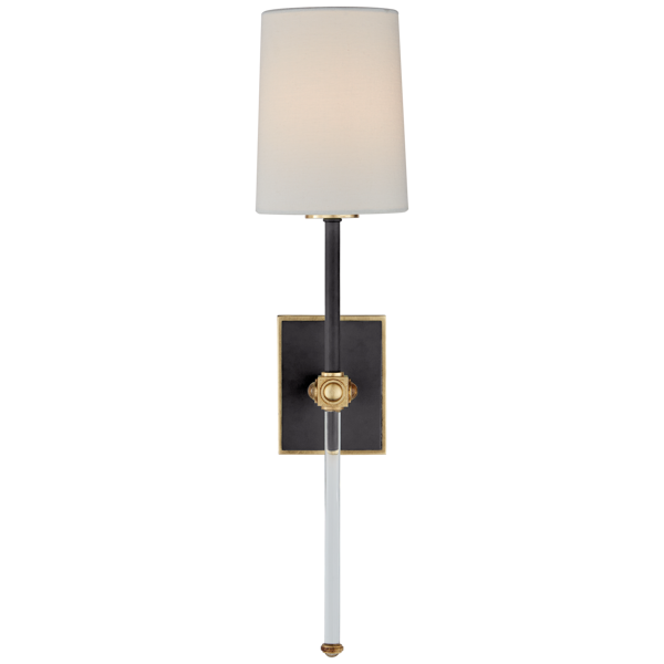 - Kinkiet Lucia Medium projektu Julie Neill został wykonany z kryształu oraz wykończony lnianym abażurem. Lampa posiada gniazdo na żarówkę E 14.