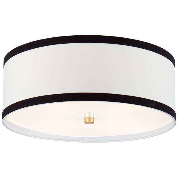 Plafon Walker Medium projektu Kate Spade New York został wykonany z lnianego abażuru w kremowym kolorze oraz lnianą obręczą w czarnym kolorze z dodatkiem złotego akcentu. Lampa posiada gniazdo na żarówkę E 27. Wymiary: 17,1 x 45,7 x 22,2 cm