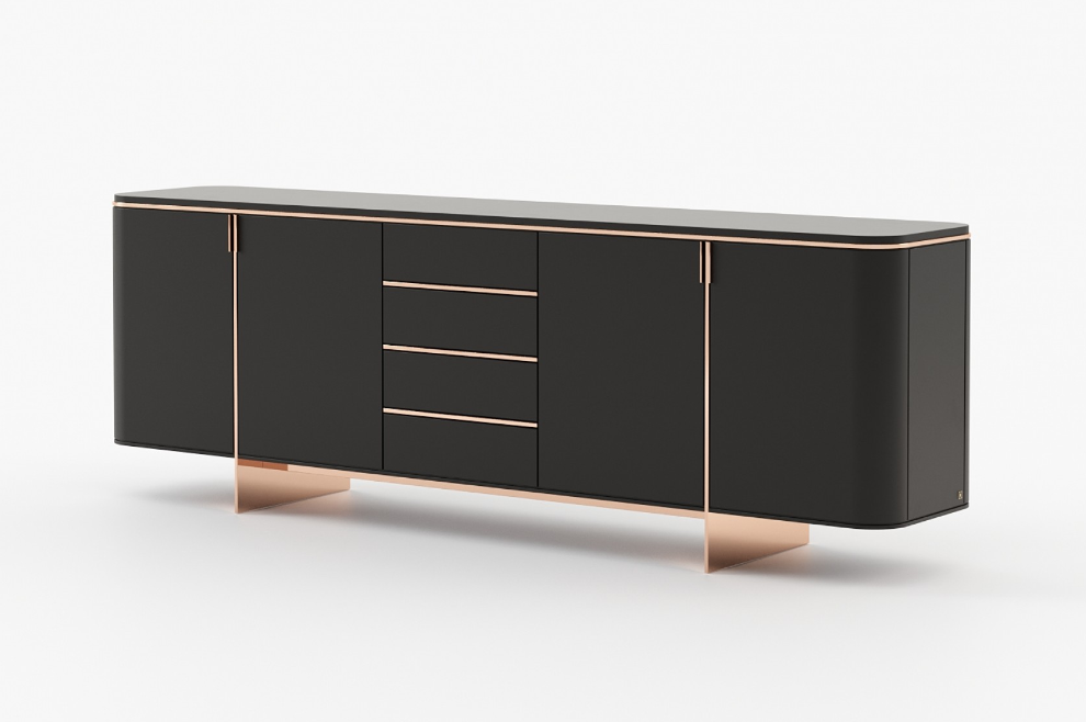 Komoda Dean firmy Laskasas. Produkt występuje w dwóch wariantach wykończenia: Typ A, Typ B. Wykończenia znajdują się w galerii zdjęć produktu. Wymiary: 250 x 51 x 85 cm.