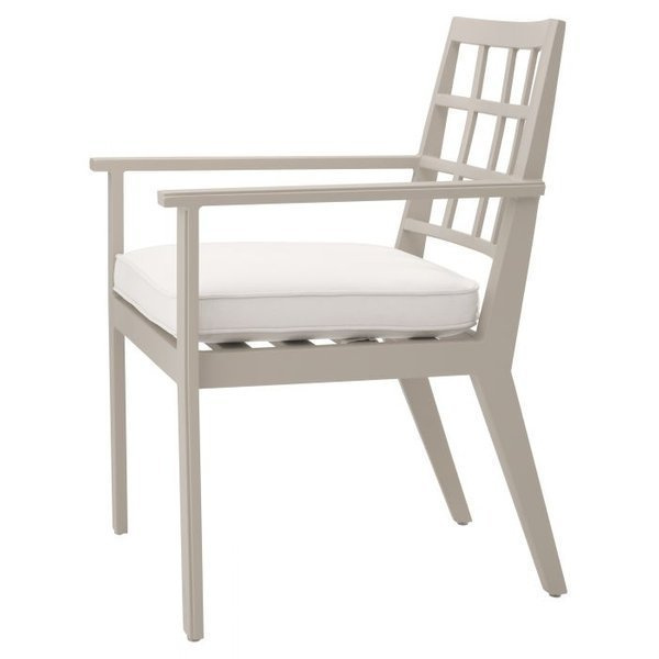 Krzesło ogrodowe Cap-Ferrat firmy Eichholtz zostało wykonane ramą w kolorze piaskowym z aluminium oraz wykończone tkaniną sunbrella canvas. Tkanina używana w naszej kolekcji outdoor jest najpopularniejszym materiałem outdoorowym Sunbrella®. Tkany w 100% z barwionego w masie akrylu, Sunbrella® jest łatwa w pielęgnacji, odporna na plamy, trwała kolorystycznie i zapewnia do 98% ochrony przed promieniowaniem UV.