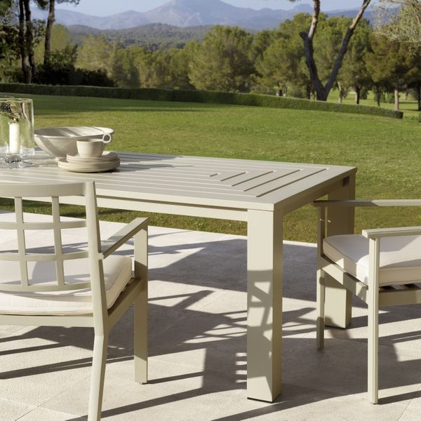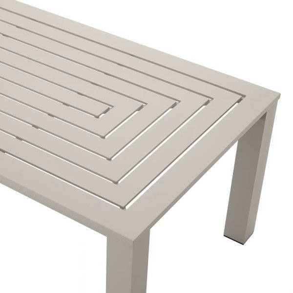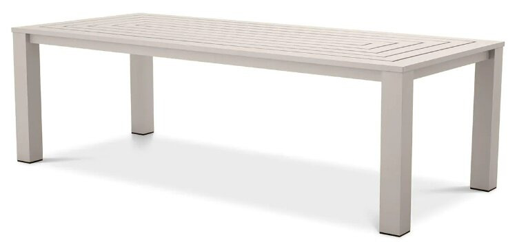 Stół ogrodowy Vistamar firmy Eichholtz został wykonany z aluminium w piaskowym kolorze oraz wykończony ażurowym blatem. Wymiary: 240 x 105 x wys. 74,5 cm.