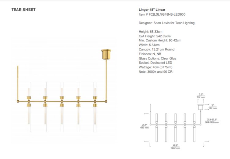 - Lampa wisząca Linger 48 projektu Sean Lavin została wykonana z naturalnego mosiądzu. Lampa posiada diodę led.