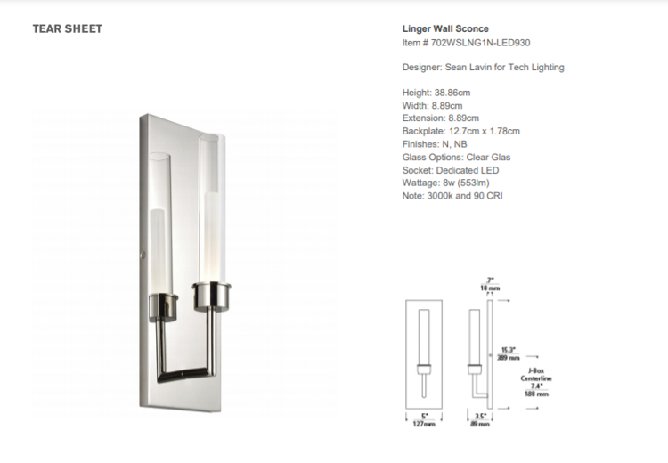 - Kinkiet Linger projektu Sean Lavin został wykonany z polerowanego niklu. Lampa posiada diodę led.