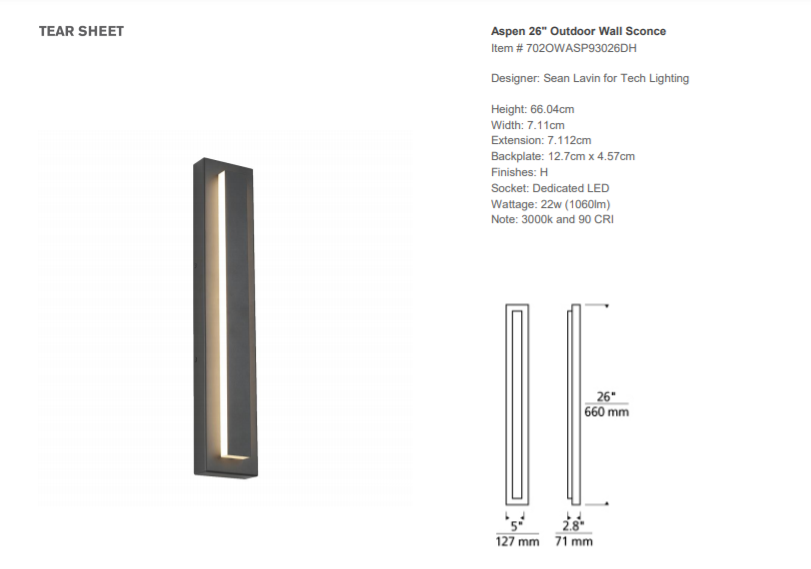 - Kinkiet zewnętrzny Aspen 26 projektu Sean Lavin w kolorze węgla drzewnego. Lampa posiada diodę led.