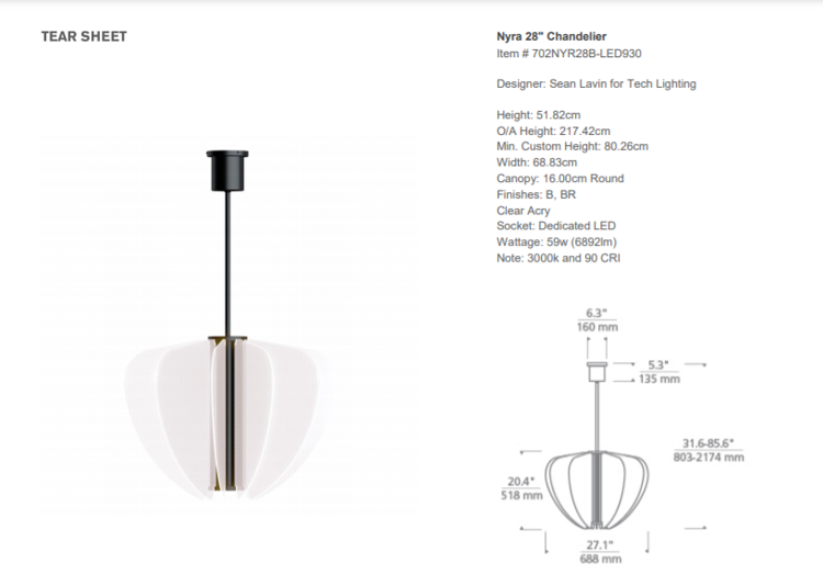 - Żyrandol Nyra 28 projektu Sean Lavin został wykonany kolorze Nightshade Black. Lampa posiada diodę led.