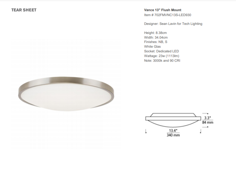 - Plafon Vance 13 projektu Sean Lavin został wykonany z satynowego niklu. Lampa posiada diode LED.