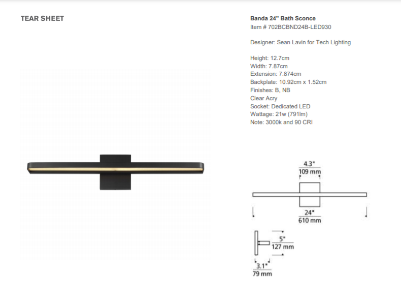 - Kinkiet Banda 24 projektu Sean Lavin został wykonany w kolorze matowej czerni. Lampa posiada diodę led.