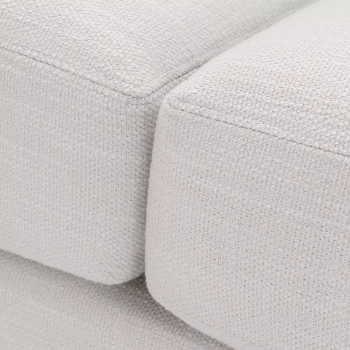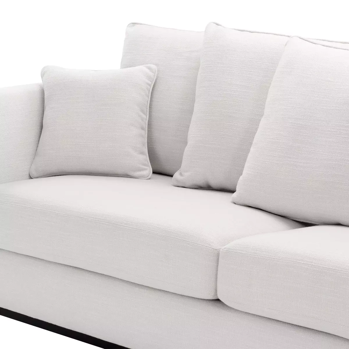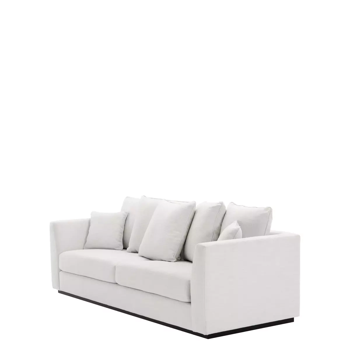 - Sofa Taylor firmy Eichholtz została wykonana tapicerką w kolorze avalon white oraz wykończona czarną podstawą.