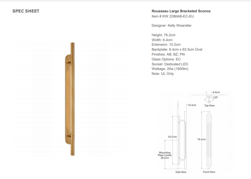Kinkiet Rousseau Large projektu Kelly Wearstler został wykonany z mosiądzu oraz wykończony kryształem. Lampa posiada diodę LED.
