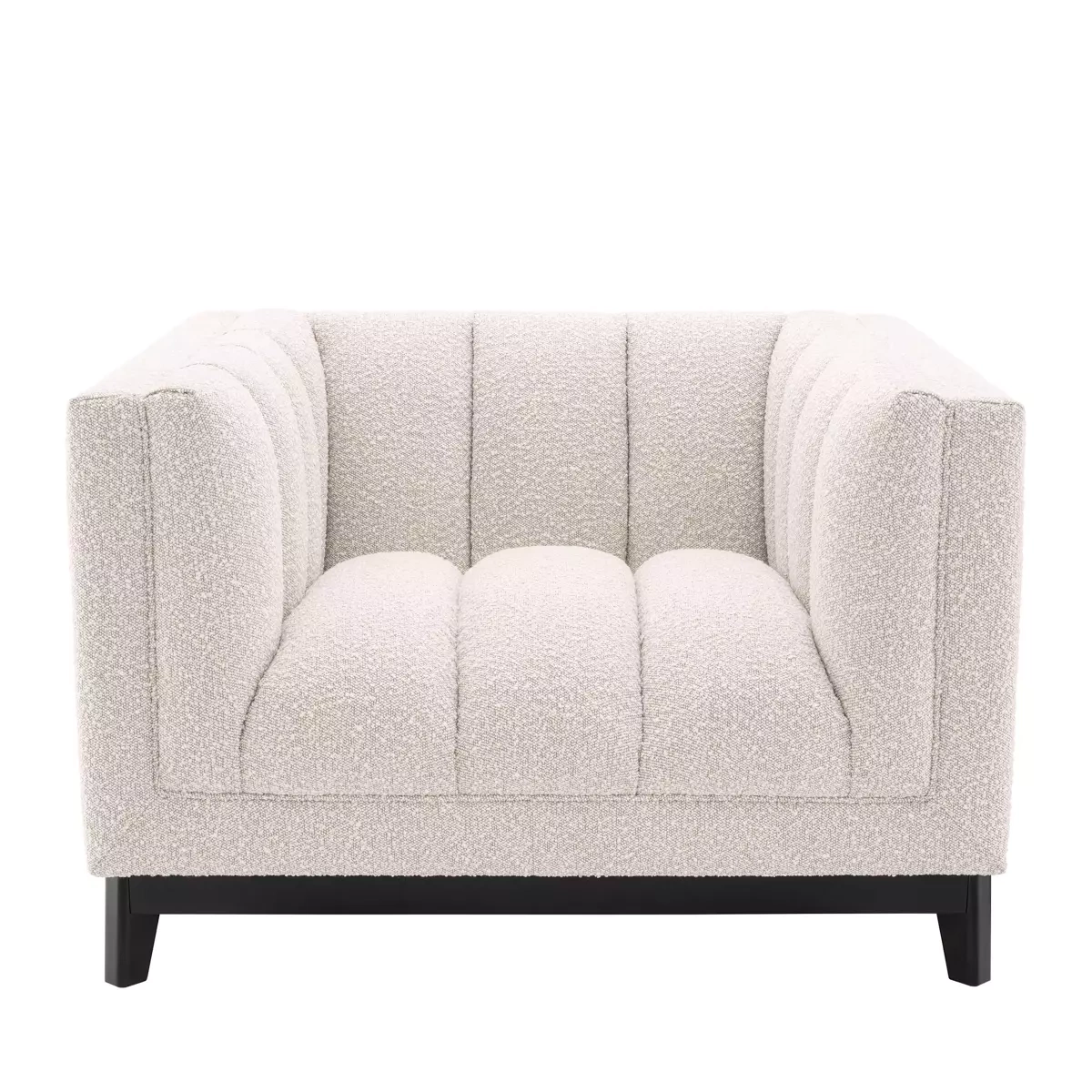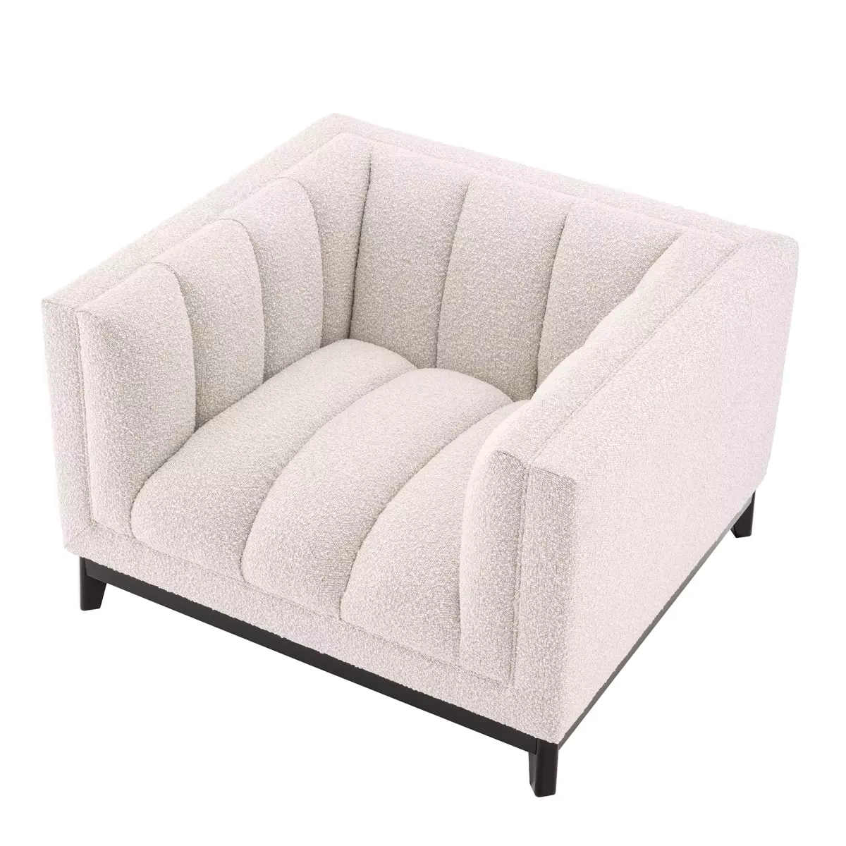 • Fotel Ditmar firmy Eichholtz posiada czarną podstawę oraz został wykończony tkaniną Bouclé cream.